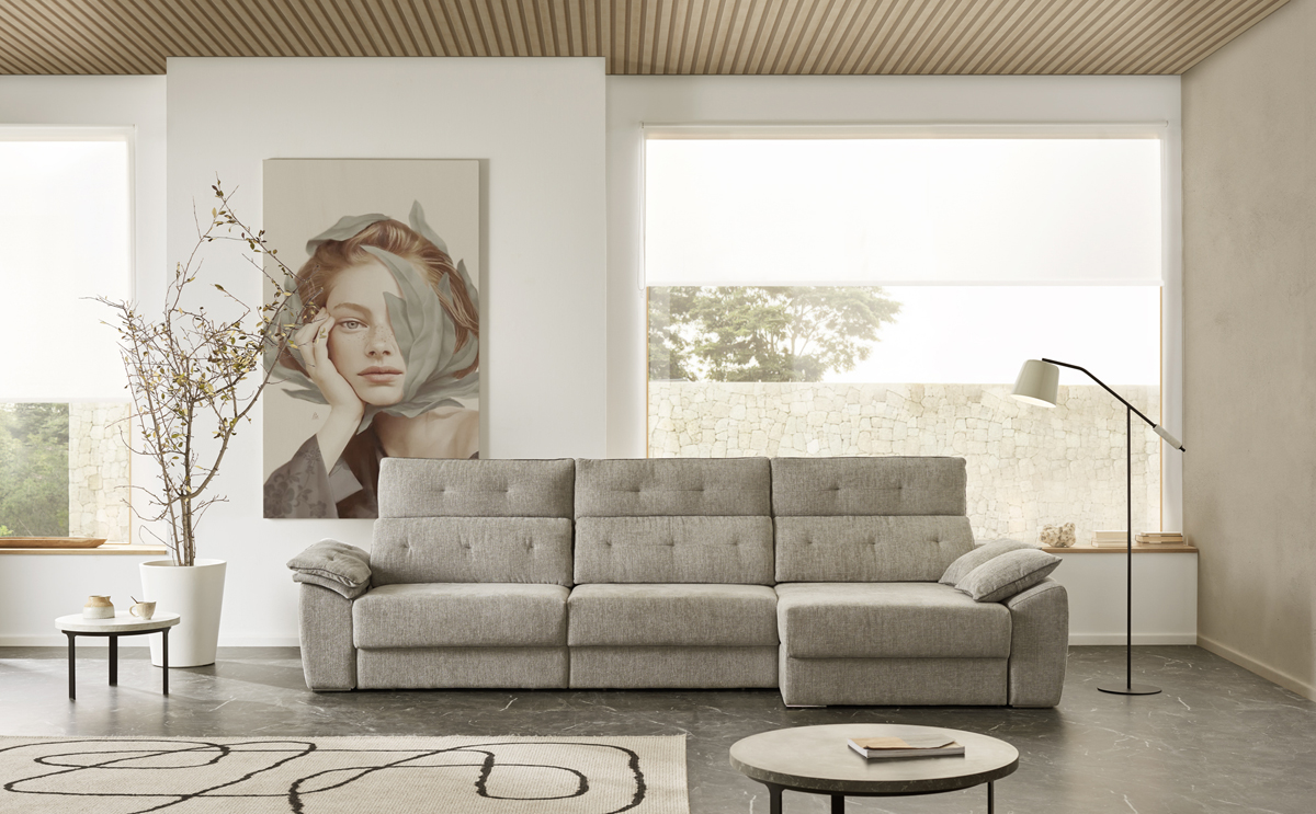 Los sofás chaise longue, con su caracterís ca prolongación para recostarse, son la de nición de confort. Perfectos para salones amplios, estos sofás no solo permiten es rar las piernas, sino que también se convierten en asientos adicionales para personas invitadas o incluso en una cómoda cama ocasional.